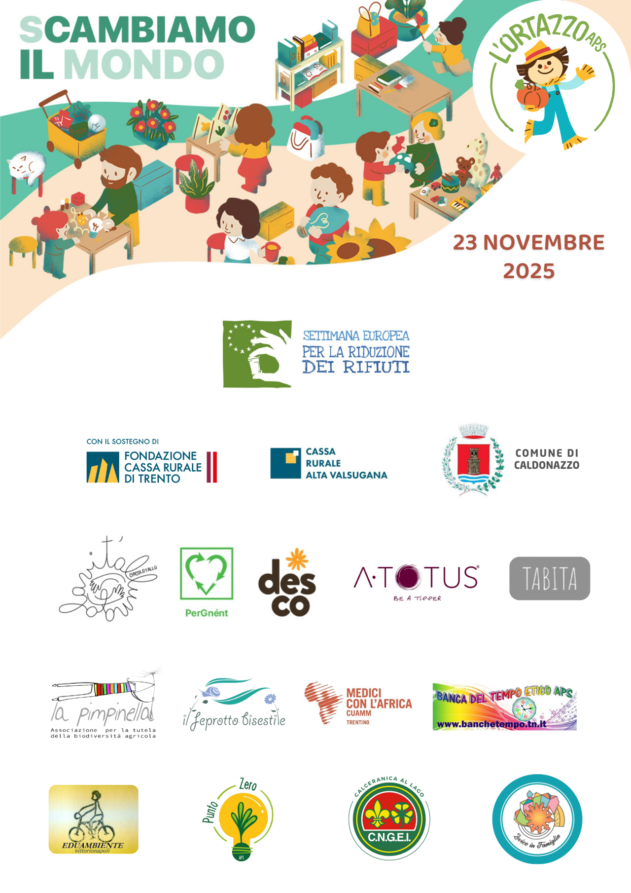 Un pomeriggio festoso di scambio e riuso! Potremo scambiare libri, abiti, idee, giocattoli e semi, partecipare a laboratori creativi e riciclosi, e fare tante attività per bambini e adulti!