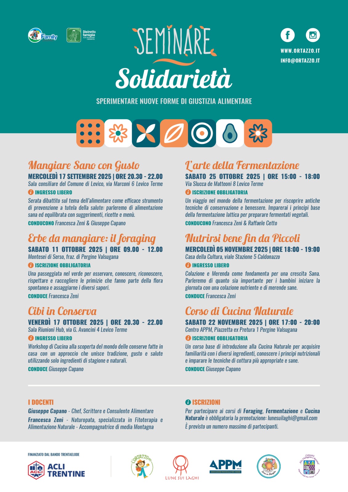 L’iniziativa, realizzata con il contributo di professionisti del settore e con il sostegno del Bando Trentaelode di ACLI Trentine, intende promuovere una cultura del cibo basata sulla giustizia alimentare, sull’accesso equo alle risorse e sulla valorizzazione delle tradizioni locali.