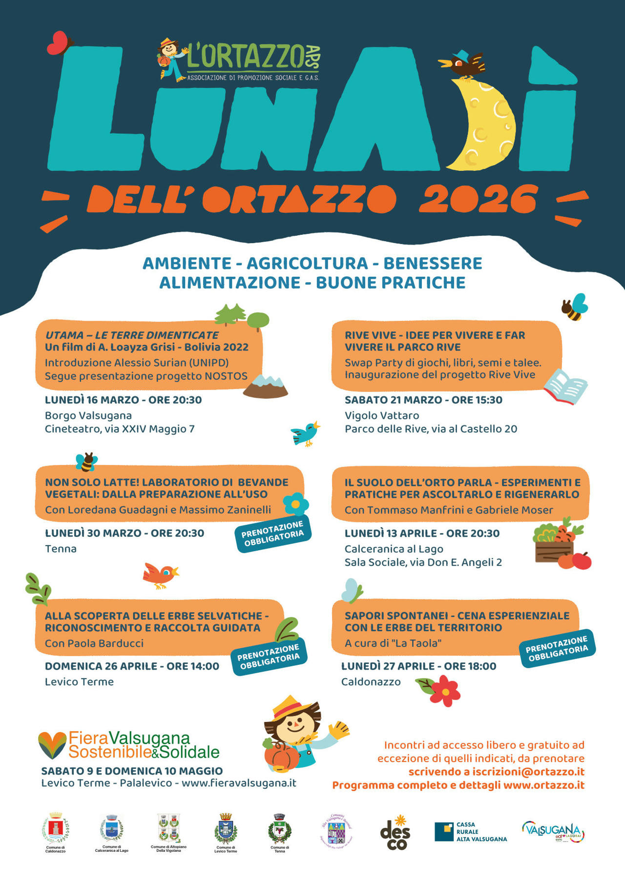 La primavera è un momento sempre speciale per noi dell’associazione L’Ortazzo, ricco di attività e di occasioni di incontro. Partirà lunedì 16 marzo la nostra rassegna di incontri, laboratori e iniziative “LunAdì” e proseguirà con 6 tappe da Borgo Valsugana all’Altopiano della Vigolana per chiudersi il 9 e 10 maggio a Levico Terme con la Fiera Valsugana Sostenibile e Solidale.