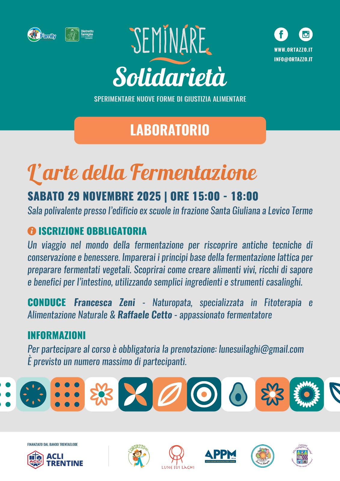 Un incontro per scoprire i principi base della fermentazione lattica e imparare a preparare fermentati vegetali come crauti, kimchi e verdure in salamoia. Una pratica semplice e naturale per ottenere alimenti vivi, ricchi di gusto e benefici per l’intestino.